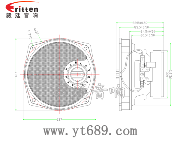 5.25寸外磁鐵盆架全頻喇叭,采用了高性能釹鐵硼永久磁,性能穩(wěn)定;