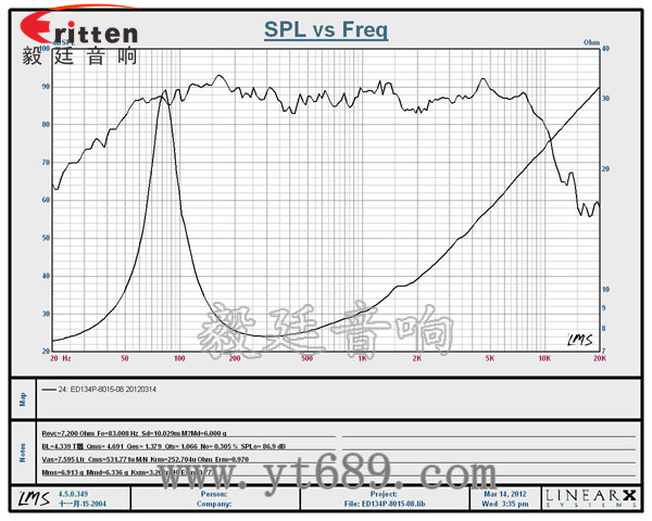 ★頻率范圍(freq response):83Hz~10KHz