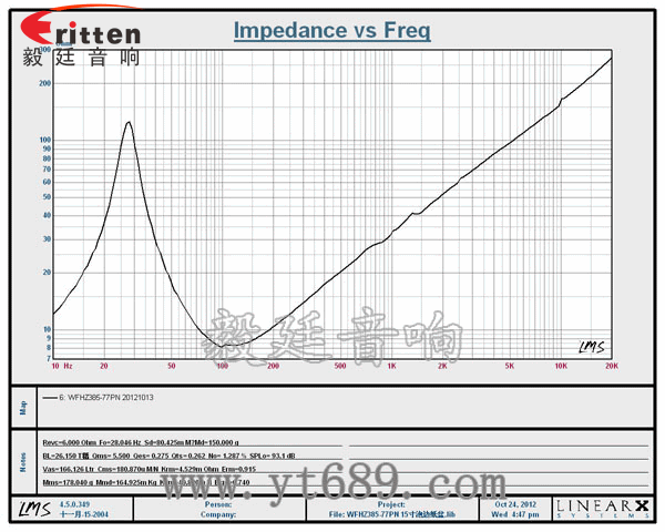 ★音圈阻抗(voice coil impedance):6Ω