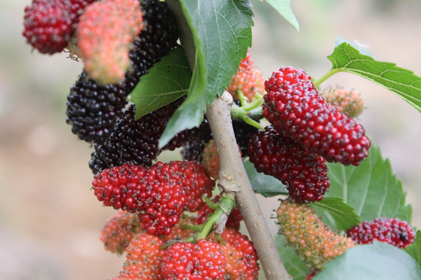 桑椹既可入食,又可入藥,中醫(yī)認(rèn)為桑椹味甘酸,性微寒,入心、肝、腎經(jīng),為滋補強壯、養(yǎng)心益智佳果。具有補血滋陰,生津止渴,潤腸燥等功效,主治陰血不足而致的頭暈?zāi)垦#Q心悸,煩躁失眠,腰膝酸軟,須發(fā)早白,消渴口干,大便干結(jié)等癥。桑子綠色變紅色再黑色,是一個漫長的過程↓