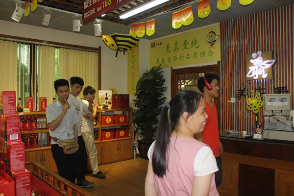 到了第一站摘桑果,我們體驗了摘桑棗的樂趣,相傳在兩千年前,桑棗已是中國皇帝御用的補品,更有人稱它為“健康寶貝”,遺憾的是桑棗的成熟期只有短短的一個月,為了彌補這個遺憾,桑果園研發(fā)了桑果汁、桑果酒,桑葉茶葉等,還回歸了“桑基魚塘”種植養(yǎng)殖模式,一年四季都能吃到喝到關(guān)于桑的產(chǎn)品。滿手都是烏紅色的,大家都不怕弄臟雙手,而是非常享受的。↓