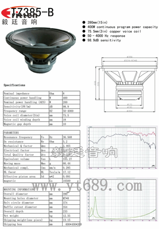 40mm5瓦內磁全頻藍牙音箱喇叭