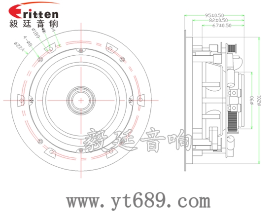 毅廷音響6.5寸天花吸頂喇叭正反面