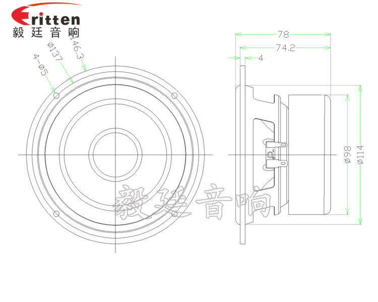 此款優異用于5.7寸35W多媒體音箱喇叭,頻寬70Hz~13KHz,東莞毅廷喇叭廠家工程師,突破傳統的精心設計思維,10年專注研發喇叭,受到廣大的客戶的信賴。