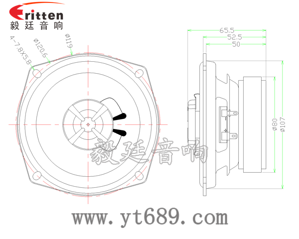5.25寸圓形鐵盆架全頻喇叭,采用了鐵氧體磁鋼,磁性強、動力足;