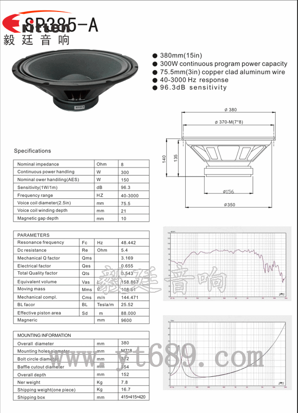 | 采用布邊紙盆,耐沖擊,耐疲勞,75芯銅線音圈,低頻極震撼、強勁有力; | |