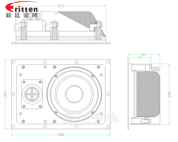 6.5寸方型外磁帶網罩全頻喇叭,采用的是精美的銅材質按壓式接線端子,配紅黑正負極,接線方便;