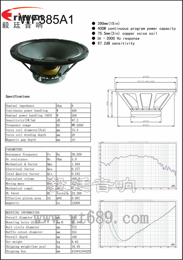 采用的是布邊紙盆紙帽,75芯銅線音圈,具有耐磨性,和耐高溫,低頻極震撼,強勁有力。
