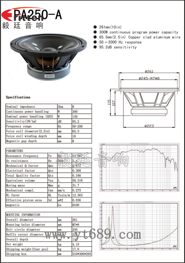 此款超級(jí)重低音揚(yáng)聲器,廣泛用于10寸重低音舞臺(tái)音箱喇叭,額定功率達(dá)到150W,防水防潮喇叭,聽感厚實(shí),受到廣大客戶的信賴。