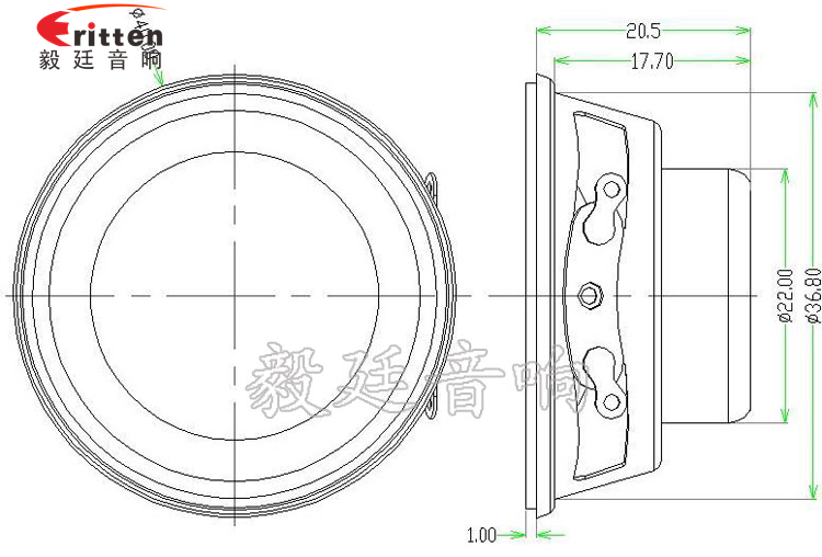 40mm圓形鐵盆架內磁全頻喇叭,采用的是高性能稀土高強磁,音色飽滿、質感強;