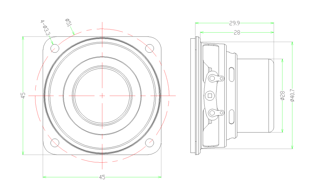 優異于1.8寸(45mm)中低音喇叭,頻率范圍141Hz~16KHz,低頻厚實,震感強,是眾人的優選,質感強,歡迎來訂購。