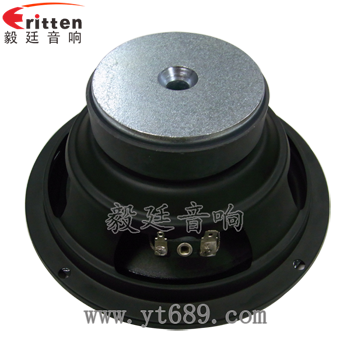 6.5寸圓型鐵盆架外磁,采用了高性能鐵氧體,磁場密度高,磁性強,有利于聲音的爆發力。