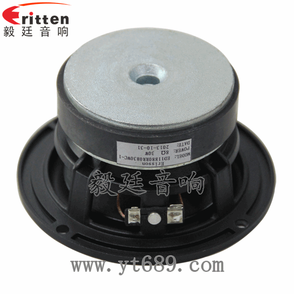 3寸圓形鐵盆架外磁雙磁中低音喇叭,采用了高性能、高密度鐵氧體,高強度雙磁體組合使喇叭低頻震撼。